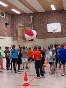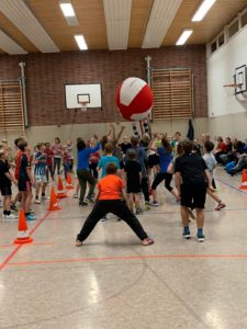 Im Vordergrund standen verschiedene Ballspiele, mit verschieden großen Bällen. Eine Variante von Völkerball, ein Zonenballspiel und ein Laufspiel mit Bällen wurden gespielt. Die 2 Stunden vergingen so wie im Flug. Natürlich durfte die altbekannte Mitarbeiterrunde beim Spielen auch dieses Jahr nicht fehlen. Und so nahm Sylbach den Sieg nach Hause!