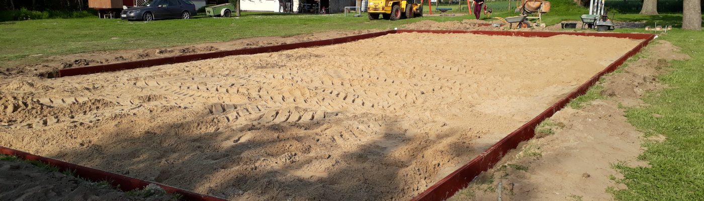 Mit schwerem Gerät, Schaufeln und Spaten wurde das Feld wieder auf das ursprüngliche Maß von etwa 20 x 10 Meter gebracht. Bei den vorhandenen Spielgeräten ist ein zusätzlicher Sandkasten entstanden. Damit das Gras nicht wieder in den Sand wächst, wurden zusätzlich Kantensteine aus Kautschuk gesetzt und mit Beton fixiert. Anschließend wurde die Fläche mit knapp 50 Tonnen Sand wieder aufgefüllt. Etwa 15 fleißige Arbeiter*innen waren beteiligt, wegen der Einschränkungen wurde in Zweier-Teams mit ausreichend Abstand gearbeitet. Der Einsatz hat sich gelohnt. Vielen Dank.