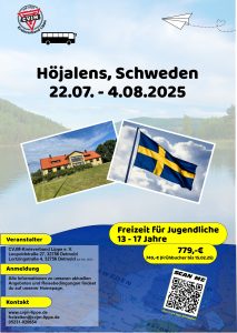 Stell dir vor: Sommer, Sonne, jede Menge Spaß und das alles in der Natur! Komm mit nach Höjalens und erlebe zwei unvergessliche Wochen mit deinen Freunden. Hier warten eine Vielzahl cooler Aktivitäten auf dich: Chillen und Schwimmen im Badesee, aufregendes Kanufahren, Sportspiele, spaßige Aktionen und vieles mehr!